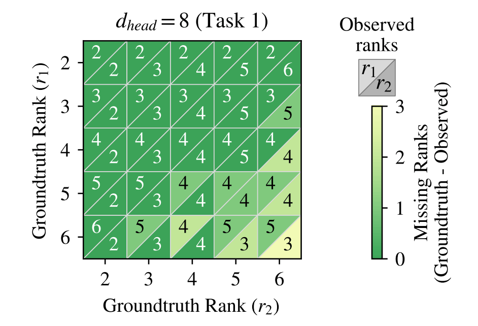 First, the authors verify that their formulation faithfully recovers the ranks of the latent variables. For this, they train their toy attention model with varying values of each parameter. Details are available in section 4 of the paper.