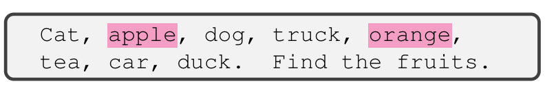 In a separate paper, LLMs Process Lists With General Filter Heads, we find that LLMs possess specific attention heads that mirror filter functions. What this means is that some attention heads specialize on focusing only on specific features and ignore all the rest. As an example, below, the attention head only focuses on items that are fruits.